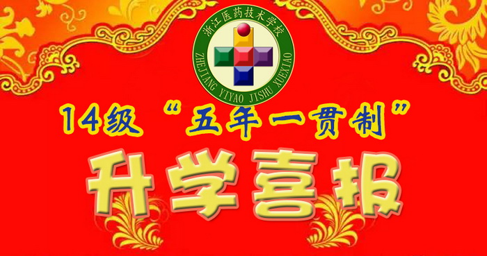 我校14级“五年一贯制”学生业已完成中职阶段的学习,现经主管部门“平时成绩”加“选拔考试成绩”的综合评定,下列班级的学生顺利升入浙江医药高等专科学校,将要开始大学阶段的深造。 特此报喜。